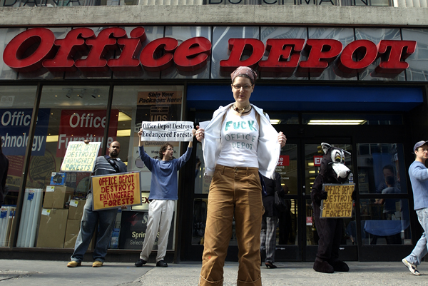 April 24th, 2003: Wetlands holds our first protest at Office Depot at their Manhattan store, as part of a national day of protest called by The Paper Campaign. We also protested Office Max in Brooklyn. (more)