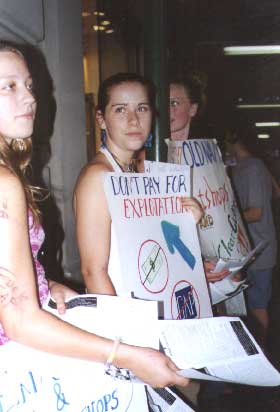 New Jersey and New York activists held their second leafleting in one month at the Kohl's store in Paramus, NJ on Saturday, June 17 as part of a national effort to build support for unionized workers in Nicaraguan clothing factories. More than 130 shoppers signed leaflets asking Kohl's to use its influence on the Mil Colores plant, where some Kohl's labels are produced, to reverse the firing of 200 unionized workers and to drop criminal charges against 68 workers who had participated in a strike. A dozen or more shoppers took the signed leaflets inside to deliver to the manager, while 120 others left the signed requests with the activists to be mailed to the store. The leafleting was called by the locally based Global Sweatshop Coalition. Sixteen activists participated, including three from the Upper West Side-Tipitapa Sister City Project (many Mil Colores workers live in Tipitapa) and six from the Wetlands Environmental and Social Justice Activism Center. The turnout far exceeded the expectations of the organizers, who had called for the action a little more than week earlier.
