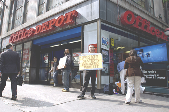 April 24th, 2003: Wetlands holds our first protest at Office Depot at their Manhattan store, as part of a national day of protest called by The Paper Campaign. We also protested Office Max in Brooklyn. (more)